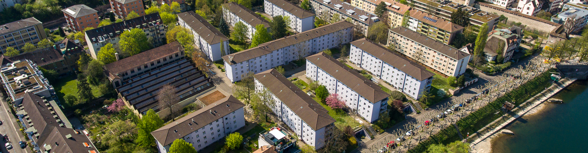 Wir verfügen an bester Lage in Basel, zwischen Rhein und Albanteich, über 17‘595 m2 Land und 200 Wohnungen in 25 Liegenschaften, der bekannten Architekten Otto und Walter Senn. Die Häuser befinden sich alle an den Adressen „In den Klosterreben“ und „Weidengasse“. Die Wohnungsgrössen reichen von 2- bis 5-Zimmern. Zudem haben wir 2 Autoeinstellhallen mit insgesamt 80 Abstellplätzen.