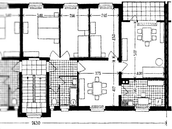 Die Wohnungsgrössen der insgesamt 200 Wohnungen setzten sich für ein städtisches Umfeld ideal zusammen und ermöglichen eine gesunde Durchmischung der Bewohnerschaft. Der ideale Schnitt der Wohnung, mit dem Wohnzimmer als zentralem Punkt, macht alle Logis zu einem Ort des Wohlfühlens.